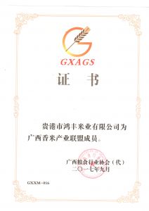 廣西 香米聯(lián)盟證書